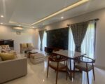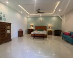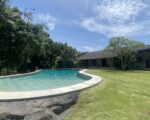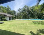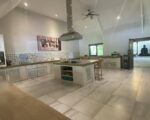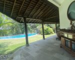 The single-story 700 sqm villa is situated on 3,050 square meters of land. Electricity 22kW, with 9 new air conditioners and ceiling fans in all living spaces. The villa consists of 5 bedrooms, each with a modern ensuite bathroom, master dressing room, guest powder room, sunken seating area, large multi-media entertainment space, huge western-style kitchen and wine storage, open living area, outdoor pizza oven, tool shed, staff quarters (3 rooms), a beautiful garden surrounding the villa with professional landscaping and fruit trees, plus an 18 m x 8 m swimming pool.
